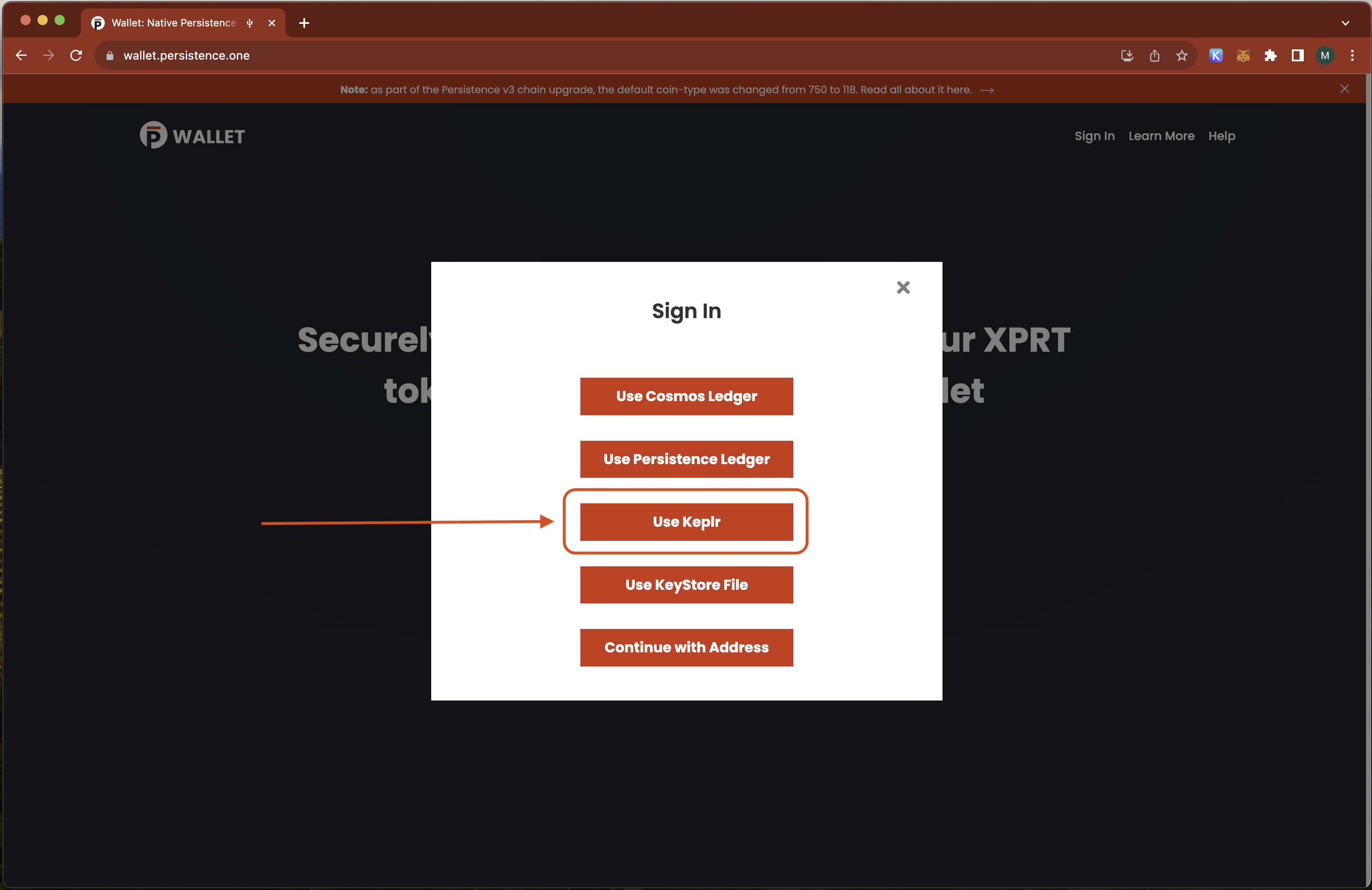 B. Connect using 'Use Keplr'