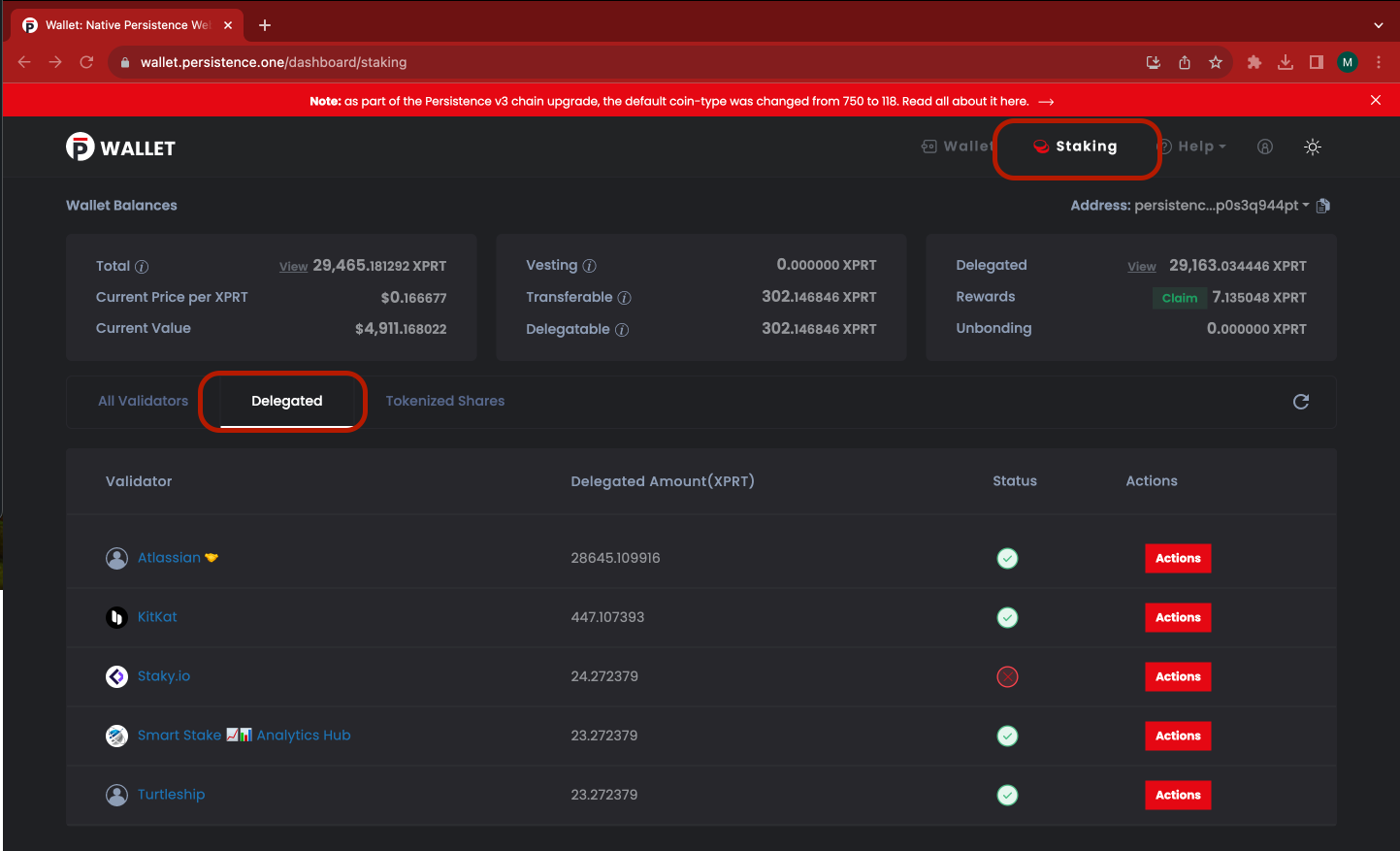 K. Migration done, your staked/delegated tokens will now be visible in the 'Delegated' Section like before.