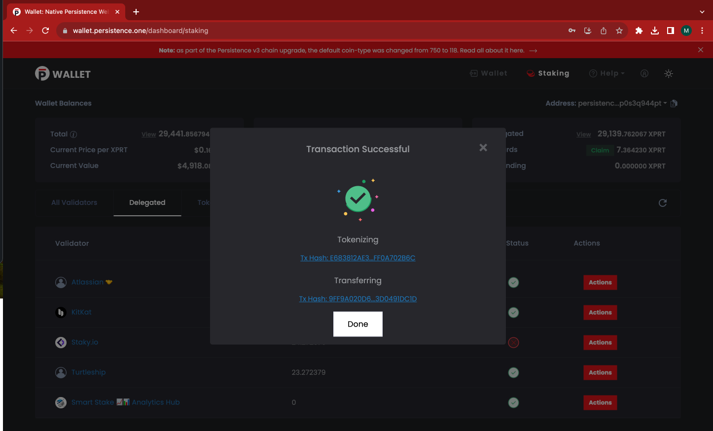 Voila! All of your available tokens are migrated. Now move to step 3, if you have any staked/Delegated Tokens.